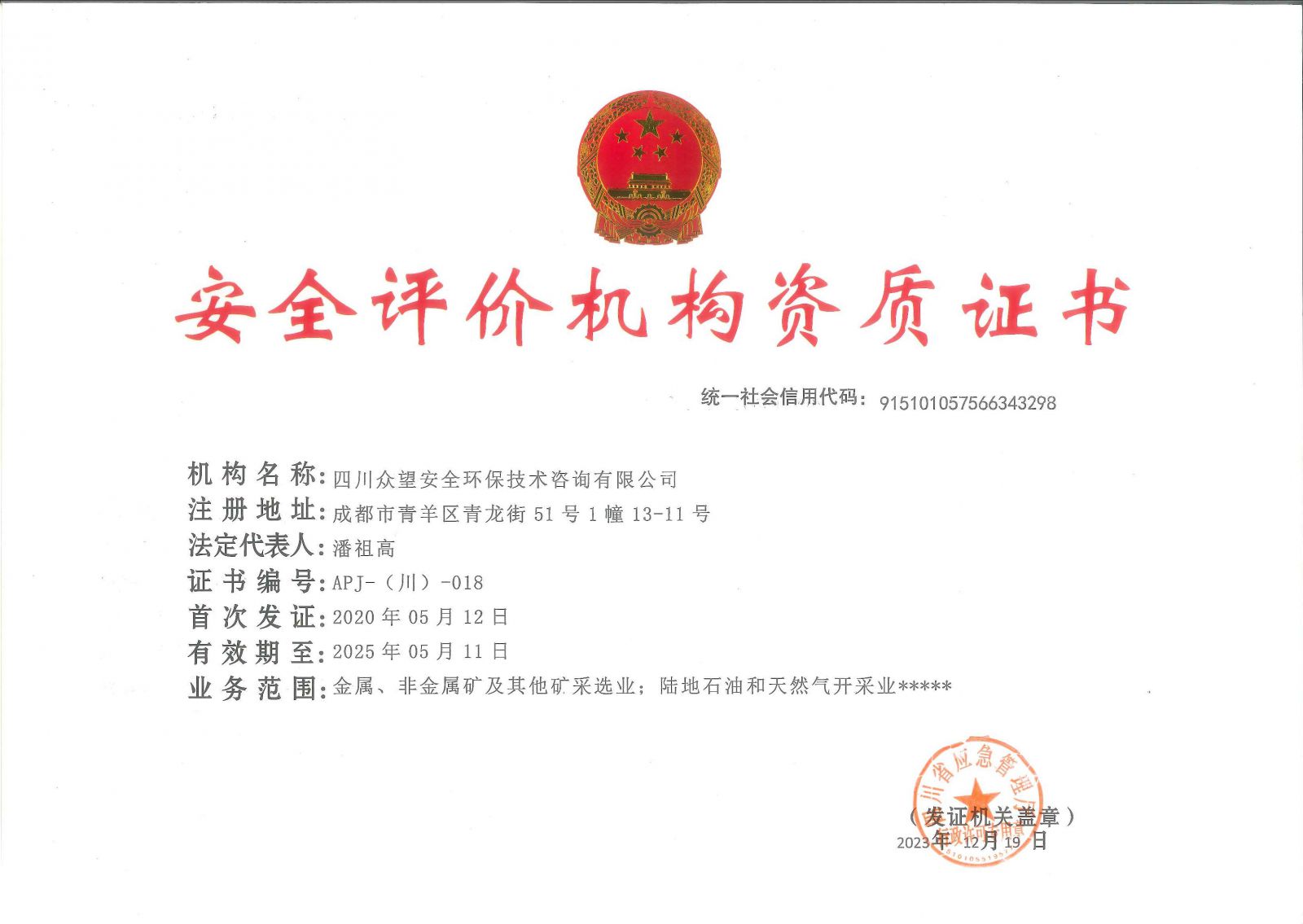 • 眾望咨詢 四川眾望安全環保技術咨詢有限公司 ...<詳情>